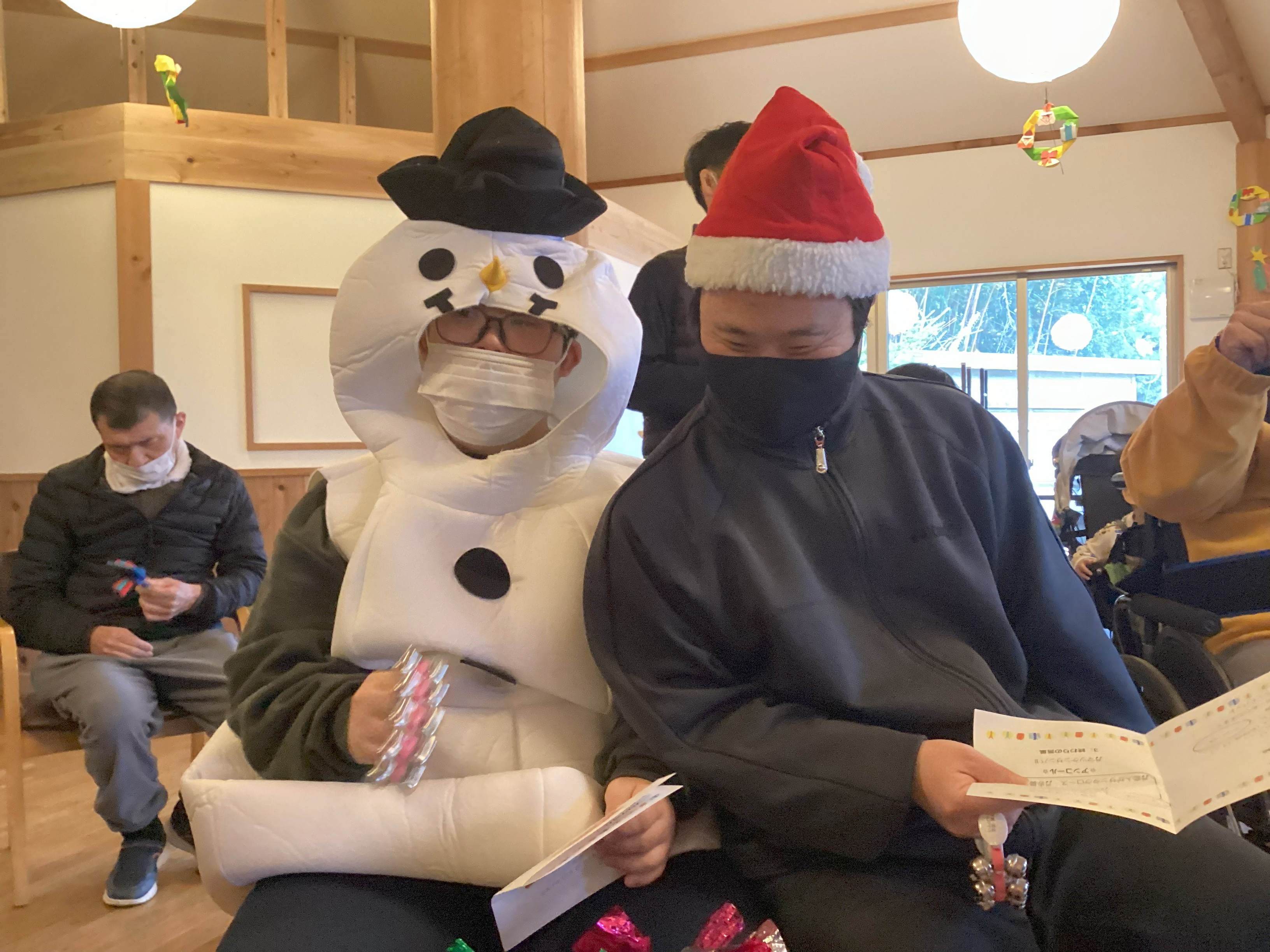 12月25日(木)に、今年もカラフルスタイルさんをお呼びしてクリスマスコンサートを行いました。クリスマスメドレーやマツケンサンバⅡが演奏されて、メンバーは楽器を鳴らしたり、歌ったりして楽しみました。
