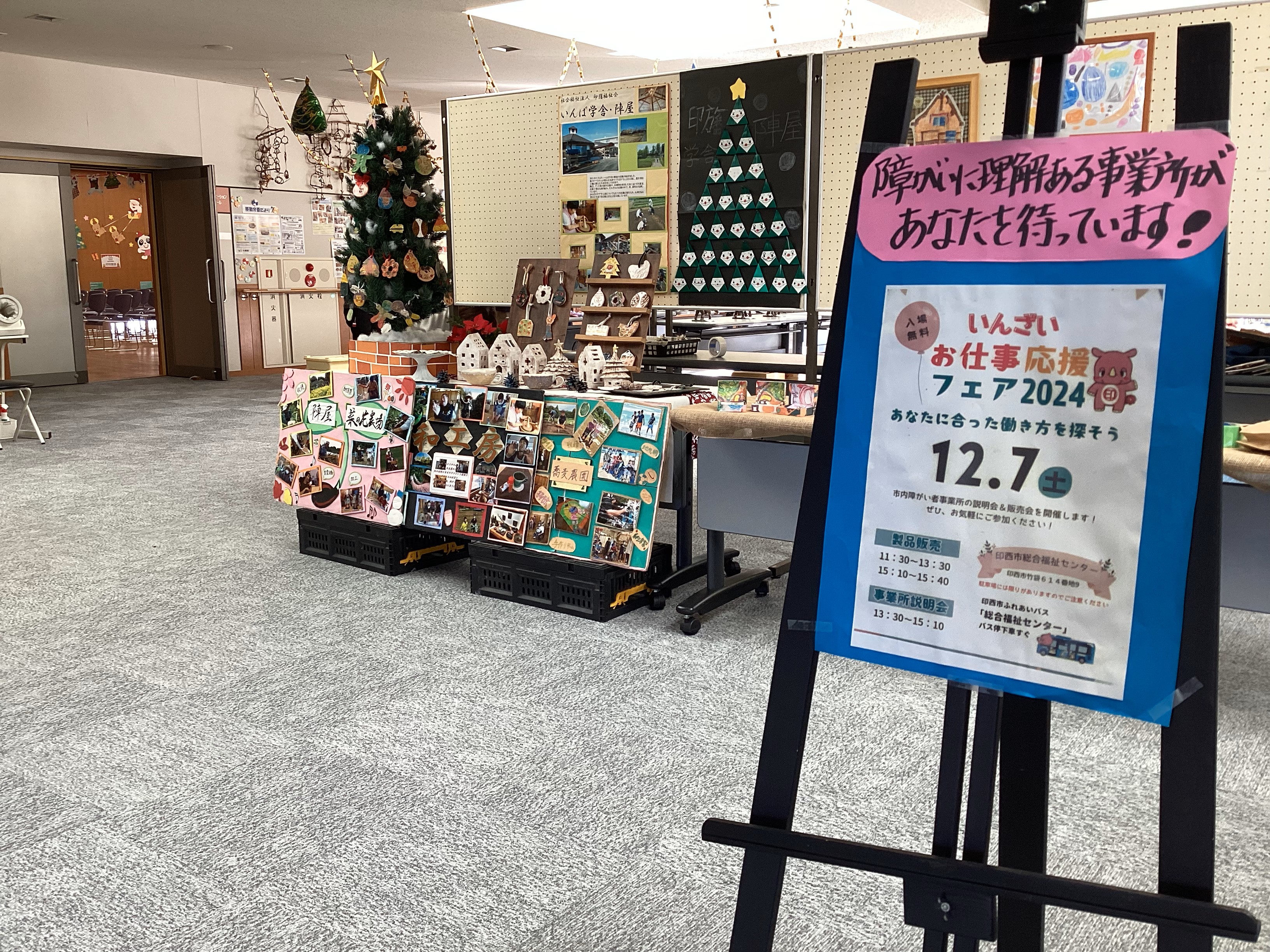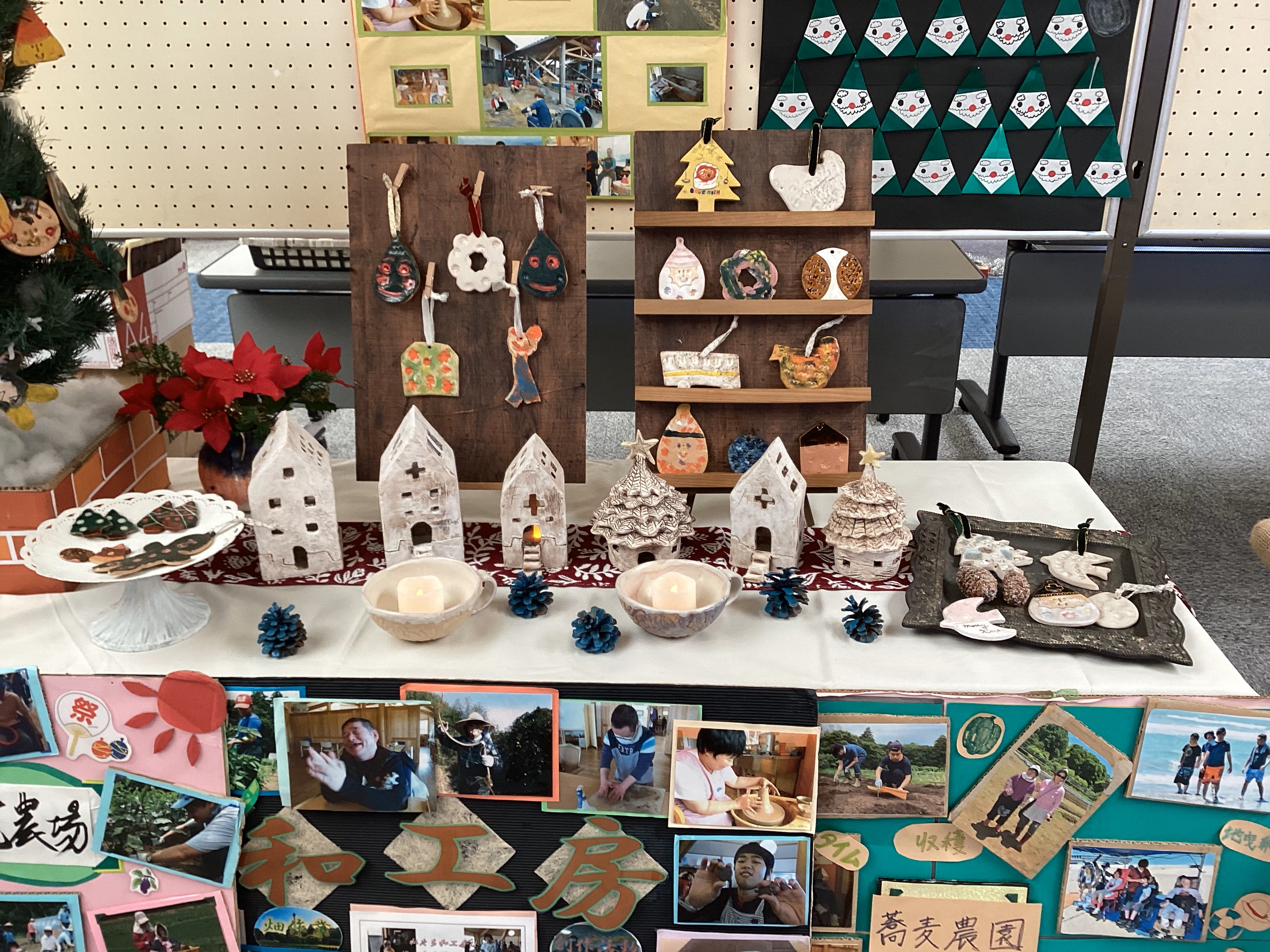 12月7日(土) 総合福祉センターでいんざいアートフェスが催されました。今回は「おしごと応援フェア」と同時開催でした。陣屋はクリスマスを題材にオーナメントやキャンドルスタンドを制作しました。また、来年度に向けて日々制作に取り組みます。