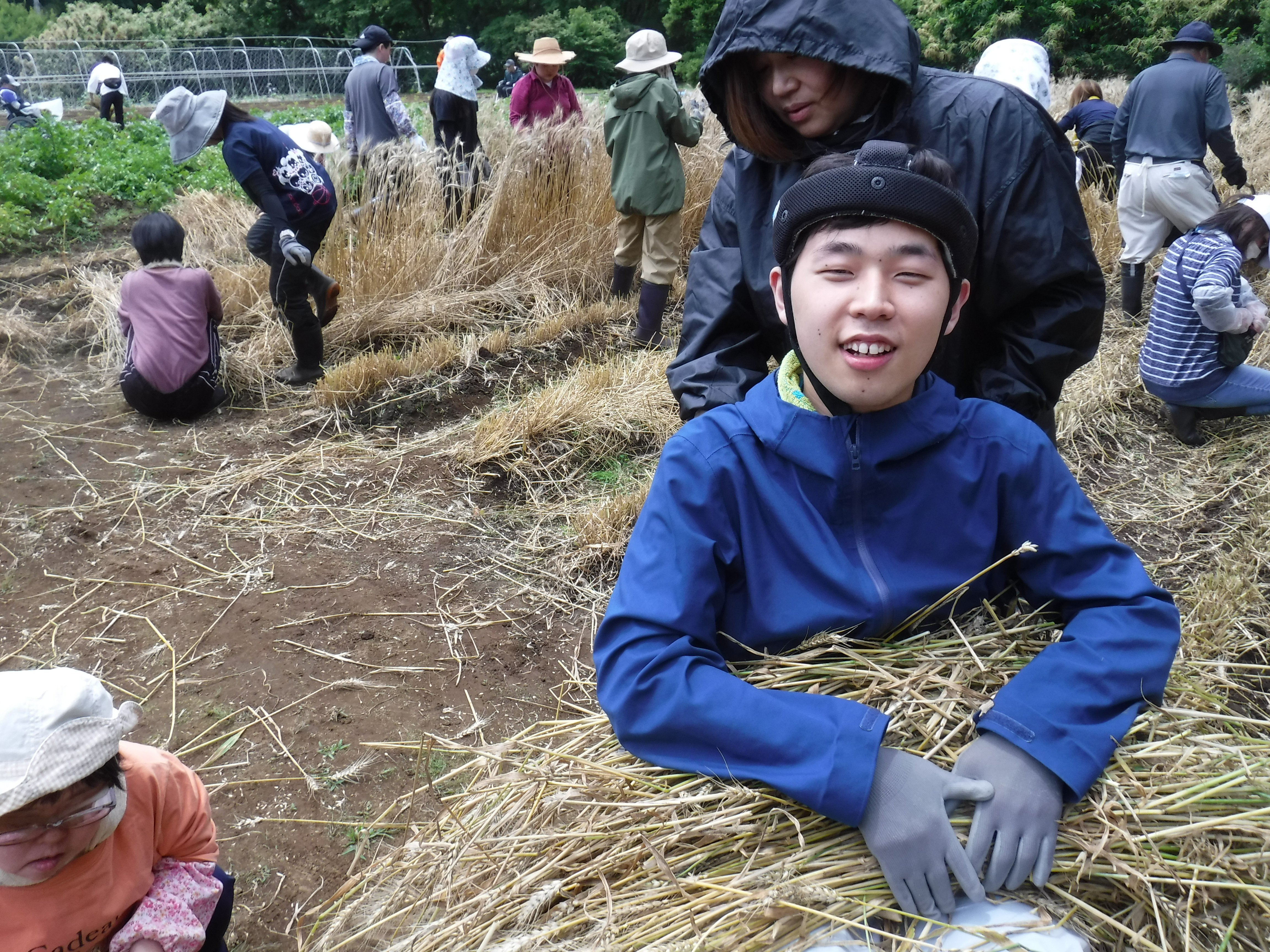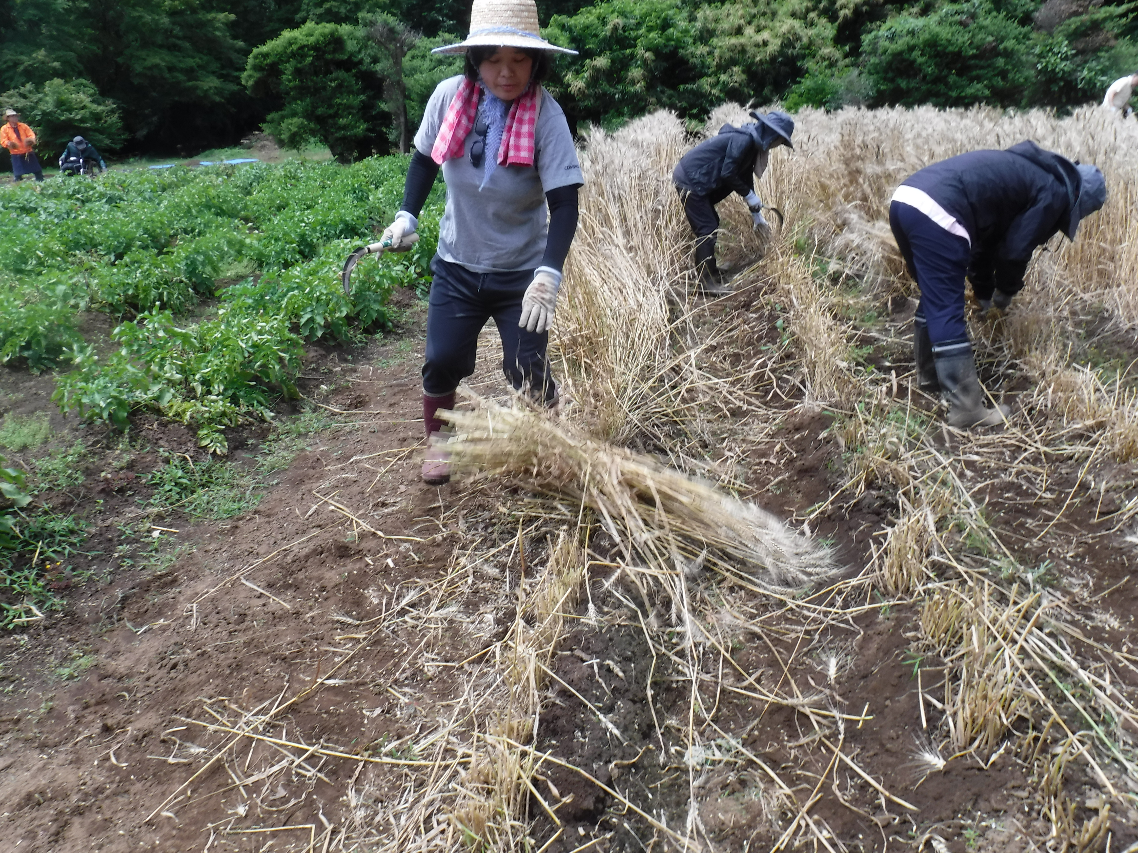 6月6日(木)小麦の収穫をメインにして共働作業日を開催しました。今年も保護者をお呼びして、手刈りによる刈り取りを行いました。当日中に脱穀まで行い、十分な収穫量を得ることができました。