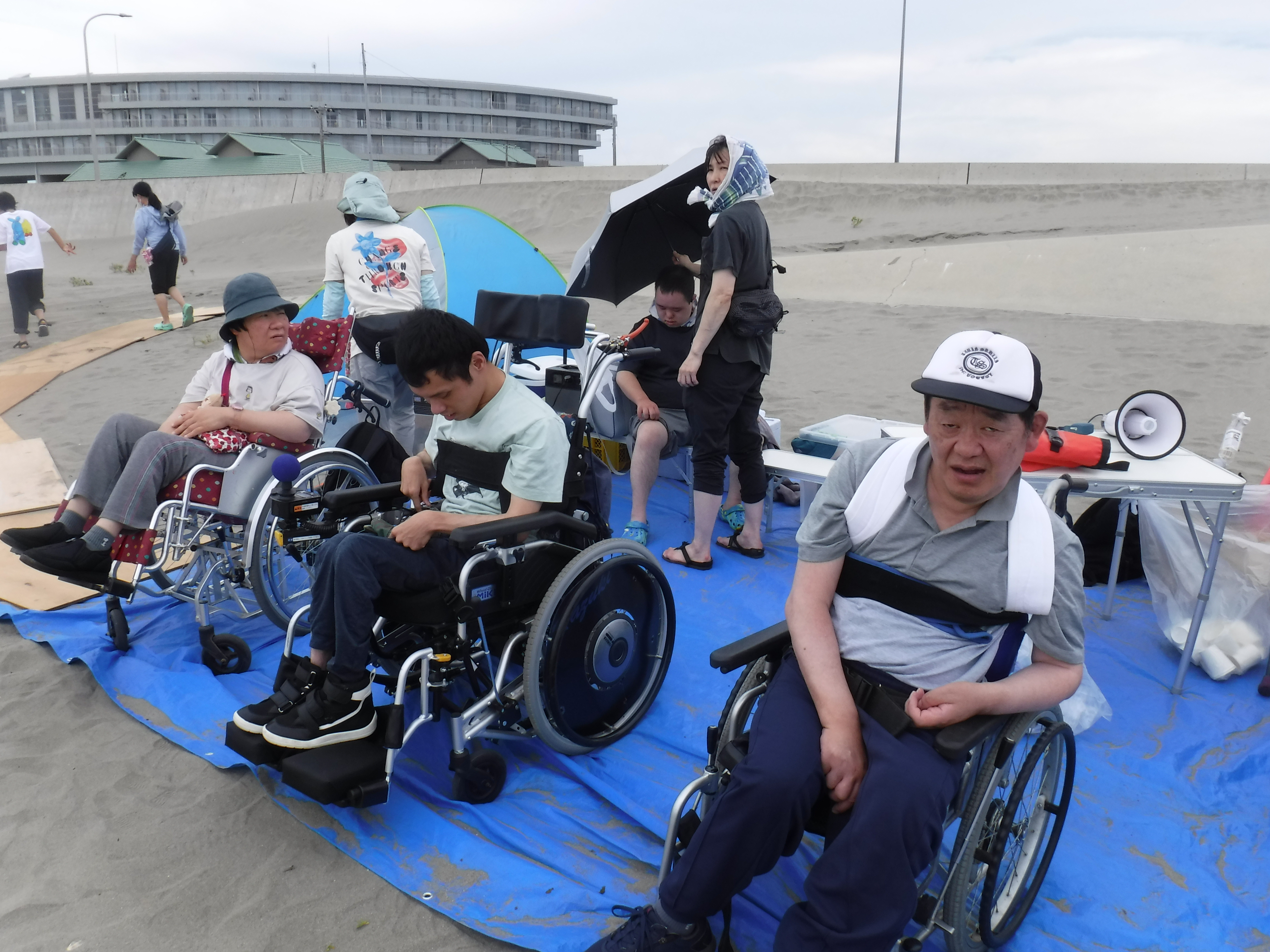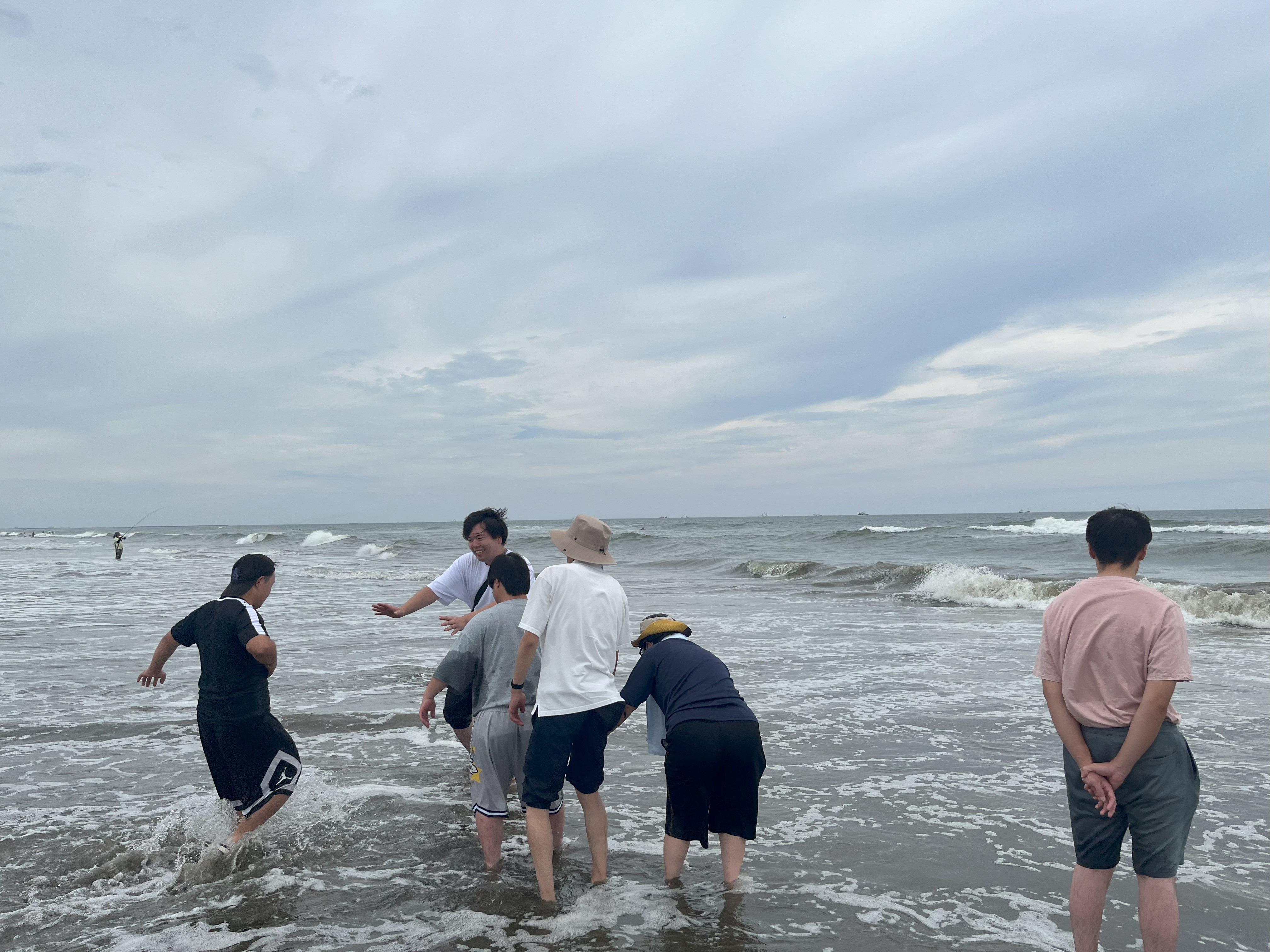 7月9日(火)海イベントを開催して九十九里真亀海水浴場に行ってきました。今年は5月に予定されていた地曳網が台風の影響により為、参加できなかったため、それに代わる陣屋のイベントとして海遊びと食事を楽しみました。
