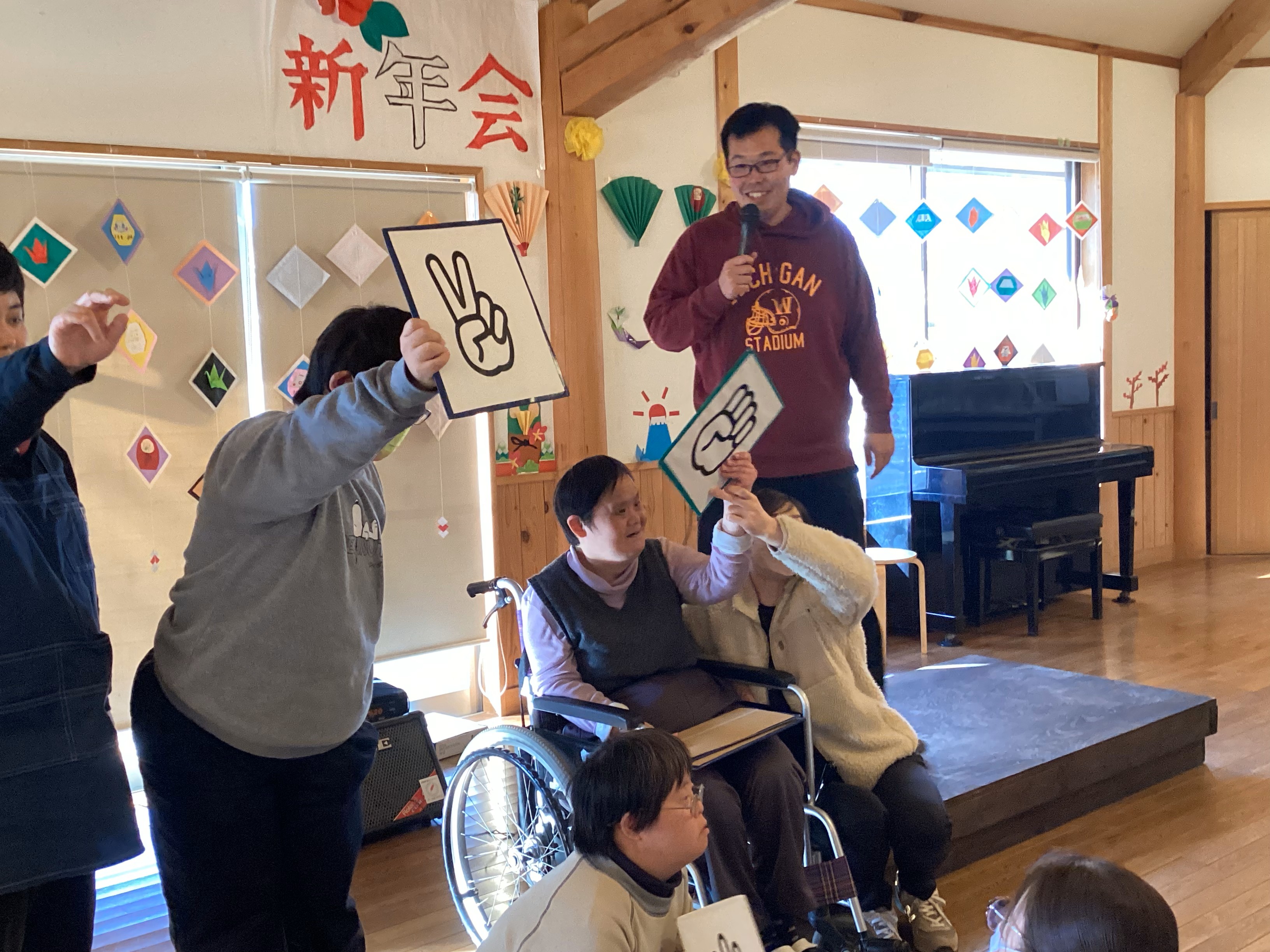 1月17日(金)に新年会を行いました。今年の催し物ですが、午前は声楽家の小倉牧子さんと音楽活動でお世話になっている後藤先生のピアノ伴奏によるコンサートが行われました。続いて成人の祝いがあり、午後はじゃんけん大会とピンゴ大会で盛り上がりました。