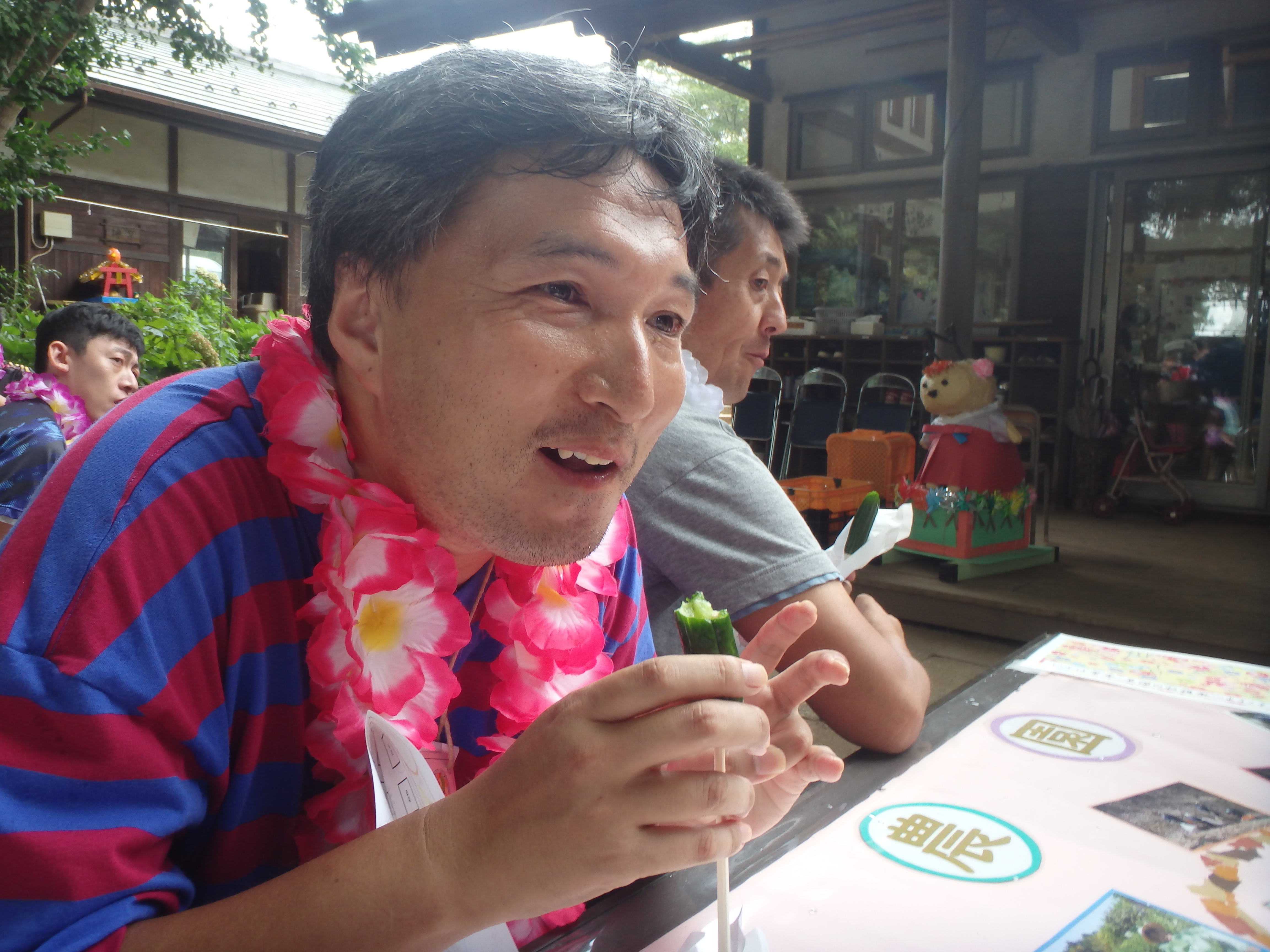 草深では初のスイカ割りを実施しました。割れたスイカを豪快に食べる姿に場は大盛り上がりでした。